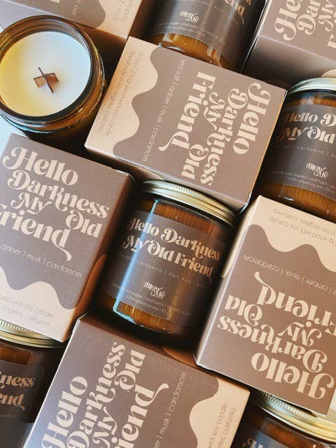 The Sound of Silence. The smell of the Black Sea. The darkness isn't a bad place to be. Notes sea salt, cardamon, amber & dark musk. 8.5oz all natural soy candle with a wood wick. Approximately 50+ hours of burn time.